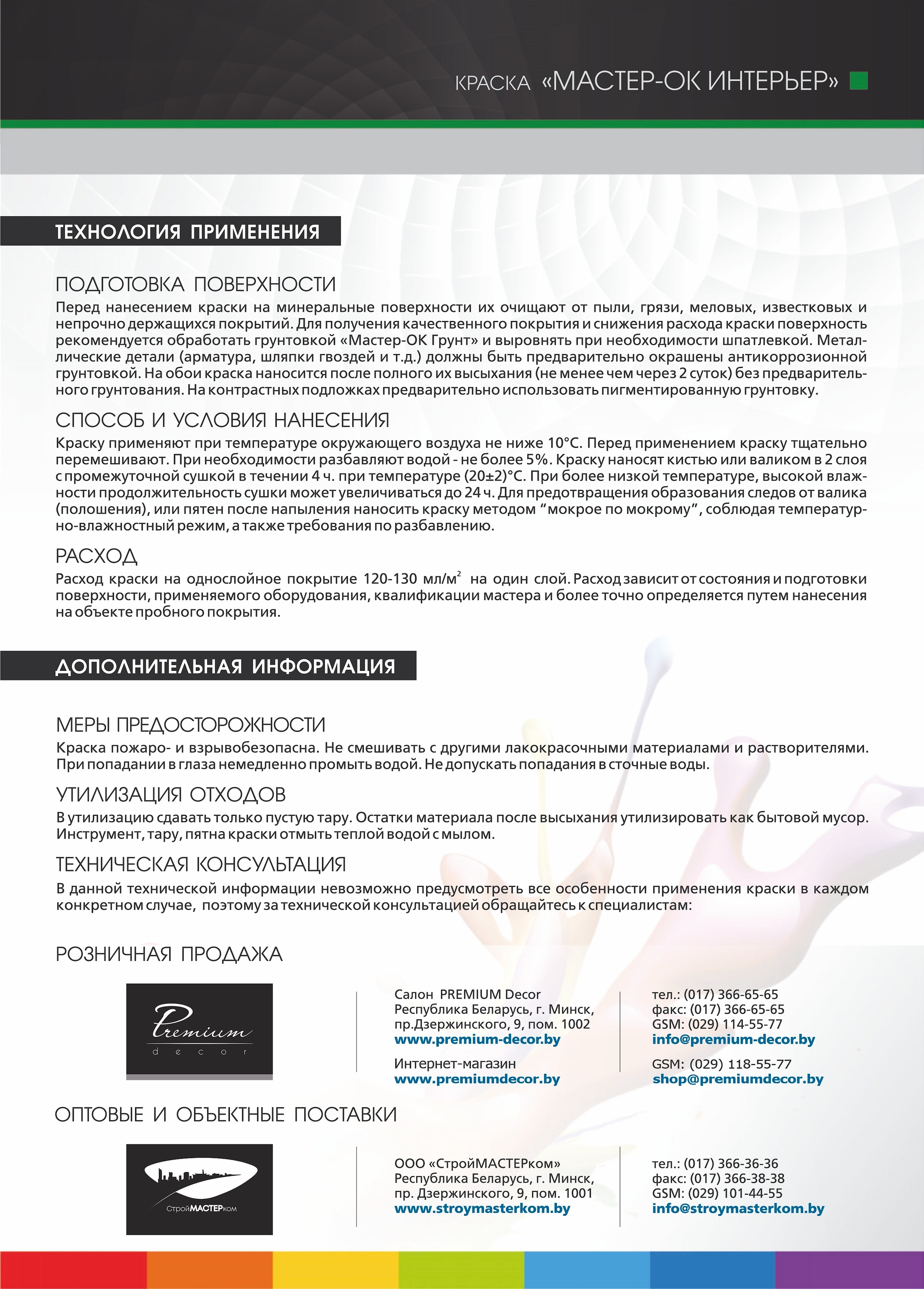 Технология применения краски Мастер-Ок Интерьер: